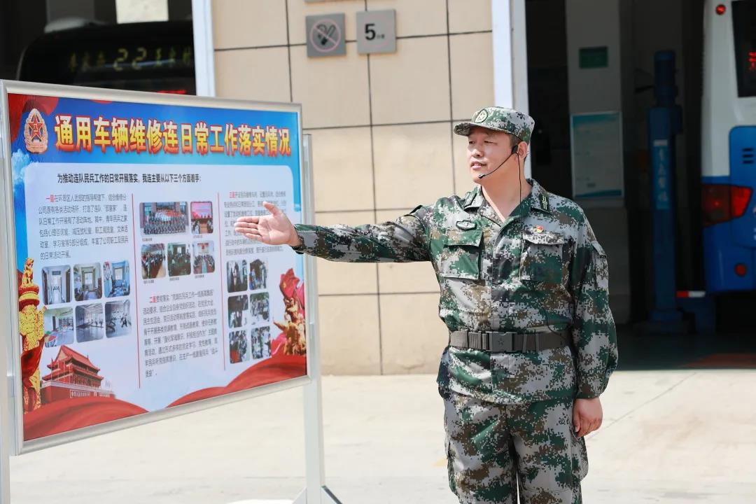 檢查指導(dǎo)團(tuán)首先來到通用車輛維修連民兵車間,連指導(dǎo)員牟曉就連部建設(shè)及開展工作情況做簡單介紹。