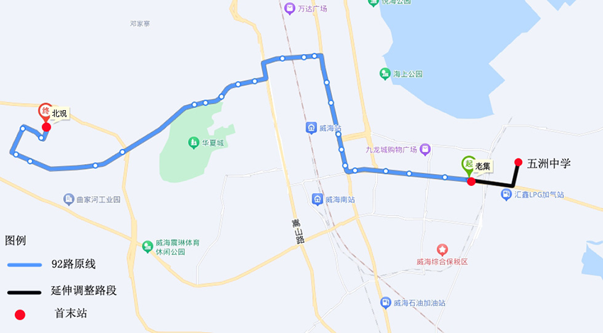 優(yōu)化調(diào)整后92路由北觀發(fā)車,按原線路運(yùn)行至老集站點(diǎn)沿齊魯大道、成大路、陽光大道至五洲中學(xué)站點(diǎn)???,增設(shè)交警三大隊(duì)、信泰龍瑞國際、五洲中學(xué)3個(gè)站點(diǎn);
