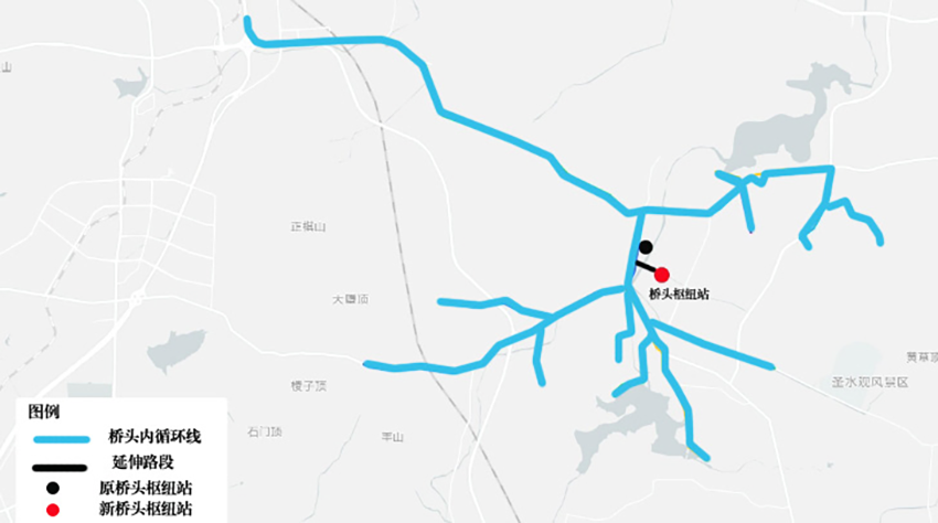 優(yōu)化調(diào)整后橋頭內(nèi)循環(huán)宋家店、官莊、東洛后支線由各村運(yùn)行至橋頭稅務(wù)站點(diǎn)調(diào)頭,改行橋順路,途經(jīng)橋頭醫(yī)院、橋頭便民服務(wù)中心至橋頭樞紐站(新);大貞、北子城、南子城、江家寨、碑魯、彭家埠、東澗、西山后支線由各村運(yùn)行至橋頭稅務(wù)站點(diǎn)改行橋順路,途經(jīng)橋頭醫(yī)院、橋頭便民服務(wù)中心至橋頭樞紐站(新),撤銷原橋興路東側(cè)橋頭樞紐站首末站,增設(shè)橋頭便民中心、橋頭醫(yī)院2個(gè)站點(diǎn)。