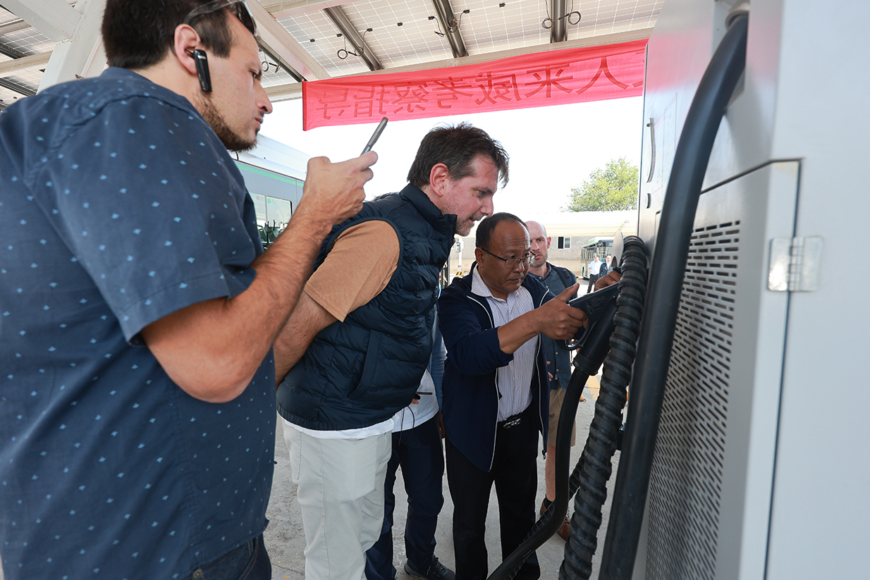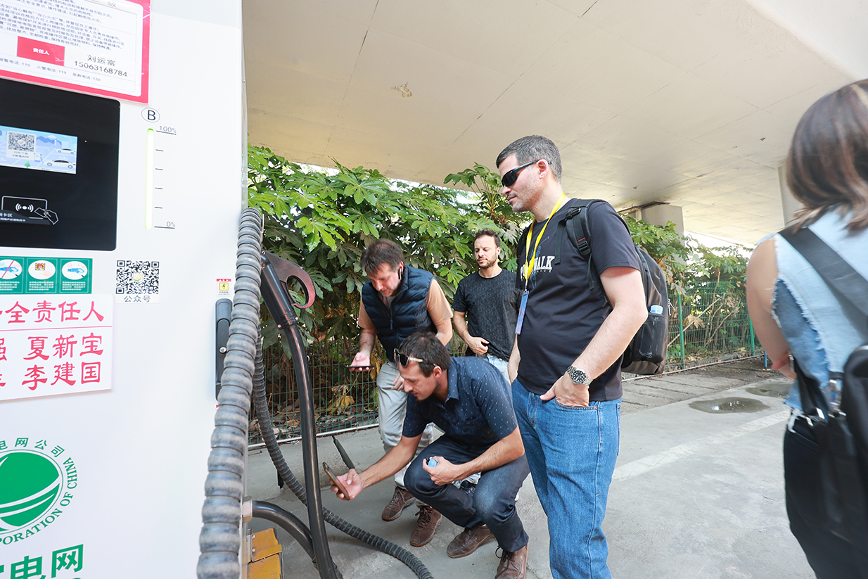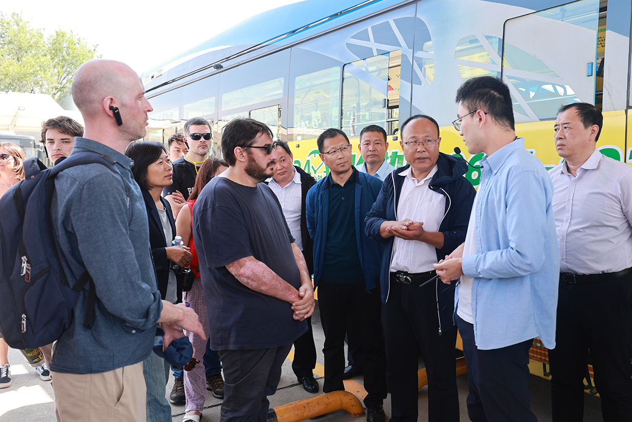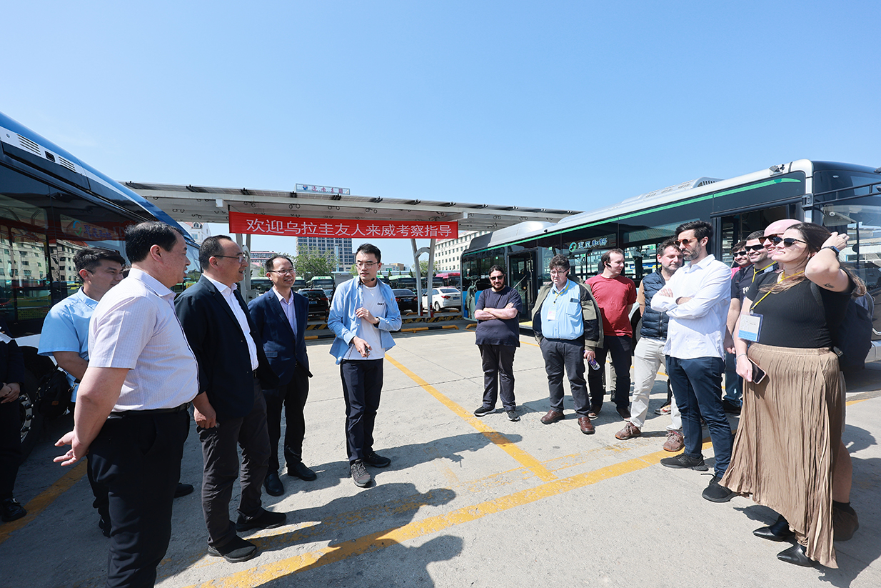 在一分公司場(chǎng)站,姜文一首先對(duì)國(guó)際友人的到來(lái)表示熱烈歡迎并介紹了公交集團(tuán)新能源車(chē)輛及設(shè)施建設(shè)情況。來(lái)自烏拉圭共和國(guó)工業(yè)能源礦業(yè)部、公共交通部、電力管理局、烏拉圭共和國(guó)大學(xué)等部委、單位及高校的學(xué)員,現(xiàn)場(chǎng)聽(tīng)取了集團(tuán)近年來(lái)落實(shí)市委市政府關(guān)于建設(shè)“精致城市”部署要求,積極打造綠色出行環(huán)境,推廣應(yīng)用純電動(dòng)新能源公交車(chē)以及充電樁建設(shè)的具體情況,并就純電動(dòng)公交車(chē)的應(yīng)用展開(kāi)了深入的交流和探討。