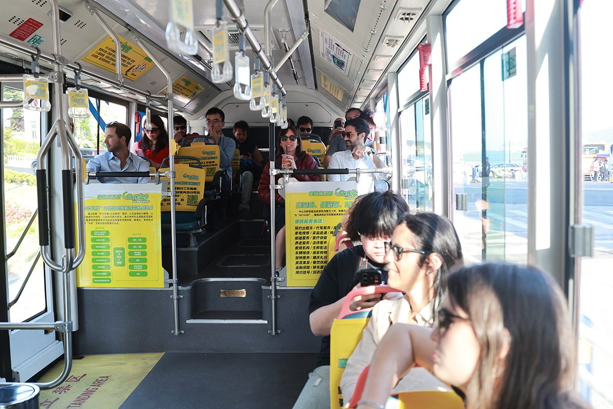 隨后,考察組一行和陪同人員乘坐純電動(dòng)公交車(chē),由江家寨立交橋樞紐站至半月灣沿線實(shí)地體驗(yàn)。國(guó)外友人紛紛感嘆車(chē)輛性能的優(yōu)越性和舒適性,并對(duì)威海優(yōu)美環(huán)境贊不絕口。
