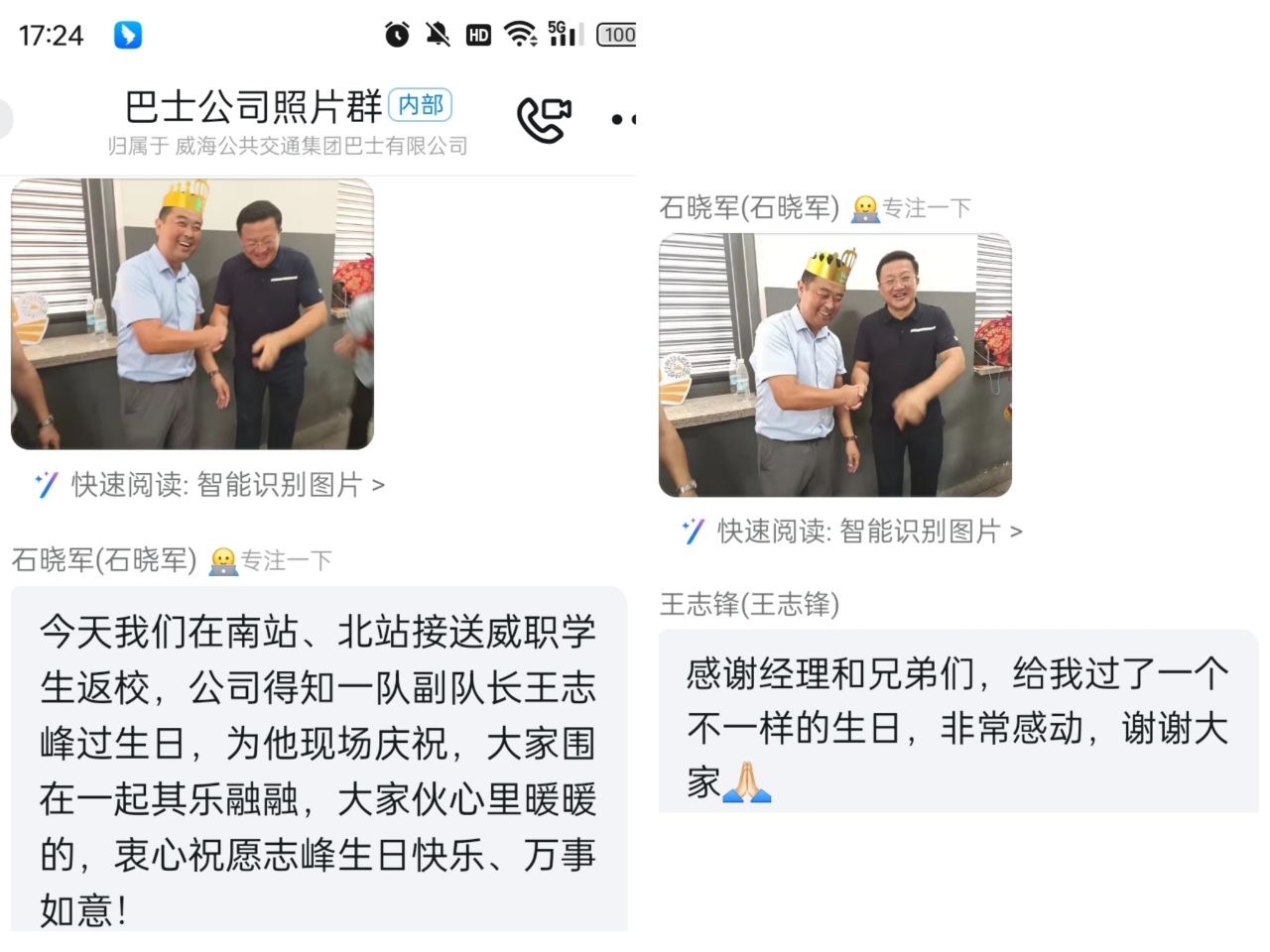 接站工作有條不絮、如火如荼地進(jìn)行,現(xiàn)場(chǎng)指揮調(diào)度的負(fù)責(zé)人偶然得知今天是參與志愿服務(wù)的王志峰生日,休息間隙為其訂購(gòu)了生日蛋糕。下午6點(diǎn),結(jié)束了一天的運(yùn)送任務(wù)后,參與此次運(yùn)送任務(wù)的干部職工在接站臺(tái),一起為王志峰舉行了一個(gè)簡(jiǎn)單而又溫馨的慶生會(huì)。“因?yàn)楣ぷ髟?,有時(shí)忙起來(lái)自己都不記得自己的生日,也就隨隨便便過(guò)去了。今天在崗位上和同事一起為我慶生心里暖暖的,很開(kāi)心也很感動(dòng),謝謝組織的關(guān)心。”王志峰笑著說(shuō)。緊張繁忙工作之余的慶生會(huì)彰顯了公司對(duì)職工的人文關(guān)懷,鼓舞著大家在各自的工作崗位上有所為、有所愛(ài)、有所得。